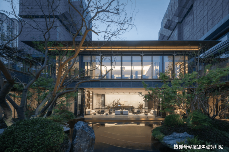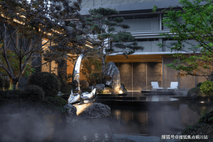 三进园林以 “藏景于林” 为核,得益于整体约1.75的低容积率,在社区中央辟出层层递进的园林秘境。首进月映绮门迎候,开启归家序曲;二进月影揽翠,名贵树种、艺术叠石与造型雕塑错落分布镜面水景之上,尽显雅致;三进琉光佳庭,巧妙整合归家大堂、下沉庭院与会所功能区,塑造出别具一格的归家礼序美学。