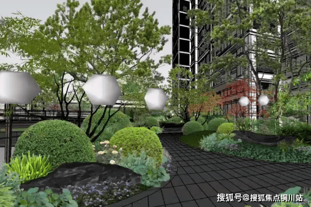 项目团队深入调研苗木特性与场地生态条件,精心甄选十余种珍稀苗木,充分利用约31-41.7米者阔楼间距,以科学搭配与层次化布局,构建起集生态涵养、景观观赏与休憩体验于一体的全方位立体绿色空间。