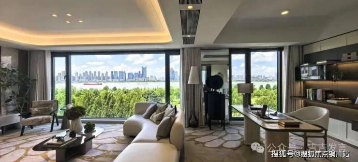 户型:3+X室2厅3卫,约16.2米的瞰江面宽,客厅、主卧、次卧、X空间四个功能区能同时享受无遮挡江景。全景无立柱设计,让江景从地面一直延伸到了天花板,而且可以根据需求调整沙发朝向!