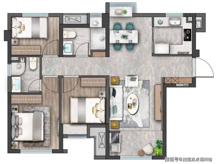 【B户型 建筑面积约81㎡三房两卫「神户型」】