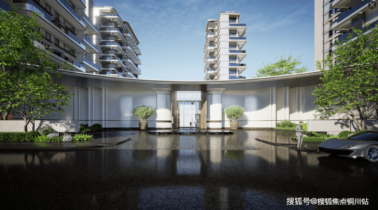 社区主入口以迪拜艾迪逊酒店为灵感原点,打造苏州豪宅首创的「约200米超尺度迎宾界面」。
