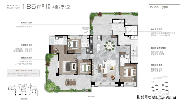 这种颠覆性的逻辑,在建面约185㎡双露台户型中得到完美印证: