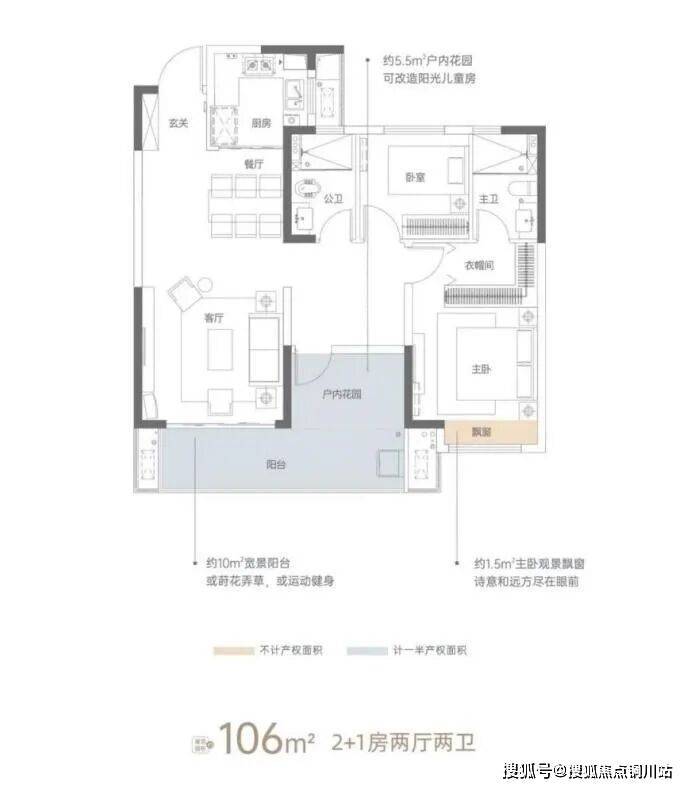 首先是建面约106㎡的三室户型,格局方正,动静分区,布局合理。户内花园半赠送,空间改造更自由灵动,打造生活弹性空间。餐客厨一体化设计、约6.2m南向景观阳台、南向三开间、双卫浴设计,功能应有尽有,尽享一家人的幸福生活。