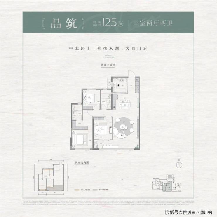 建面约125㎡、128㎡三房,空间尺度感也都优于市面上同等面积户型。