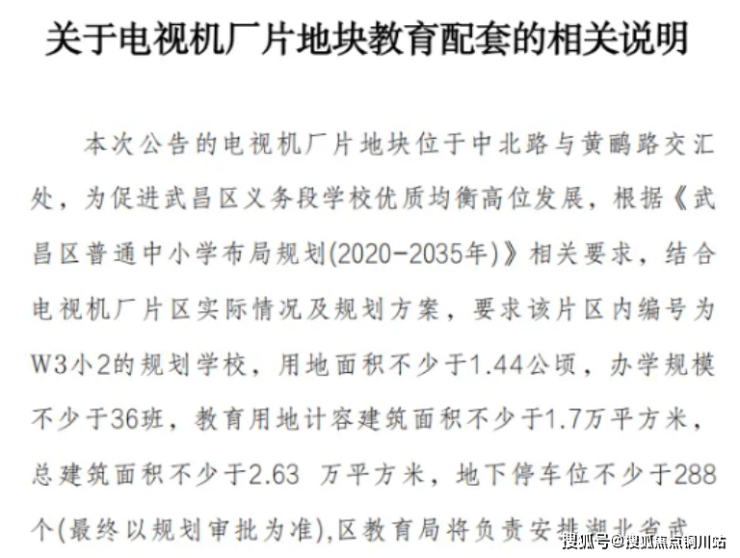 2023年12月,武昌中北路的电视机厂片地块出让时,挂牌文件中就已明确,项目内配置一所九年一贯制学校。