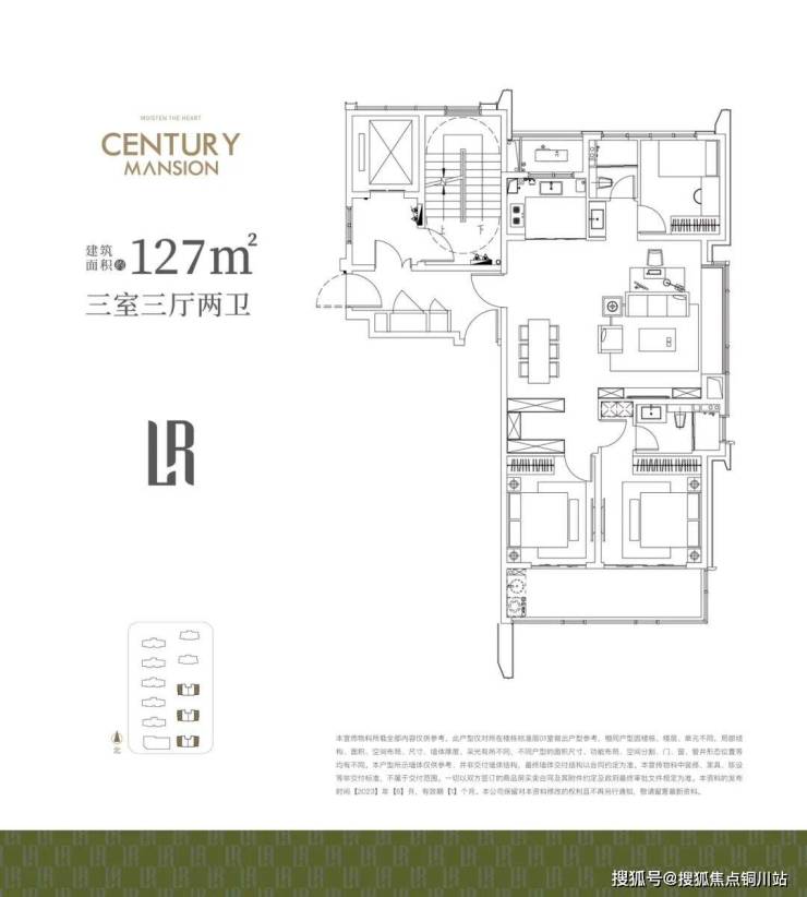 建筑面积约127㎡户型,南向双联阳台、餐客厅巨幕飘窗、北面厨房、卫生间、次卧均配置明窗,让光线无遮挡,升级专属阳光享受。