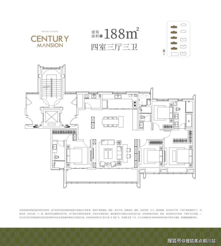 建筑面积约188㎡户型,则是鼎奢改善居所,双明卫套房设计、跑道式双联阳台、独立家政空间,让城市塔尖改善拥有真正的领地。