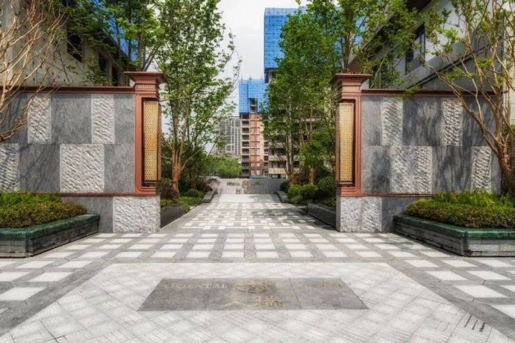 在内部景观园林设计上,保利建发天瑞传承了圆明园园林营造者 —— 香山帮的造园理念,通过障景、框景、叠山理水、遇水搭桥等传统造园手法,将单檐庑殿顶、照壁、门扇、青云五阶、影壁、四水归堂等雅致中式元素完美融入其中 。同时,对传统建筑的门檐、园林花窗、建筑立柱、传统菱形纹等细节进行了精心还原,打造出极具东方韵味的禅境中式园林景观。漫步在小区园林中,一步一景,景随步移,仿佛穿越时空,置身于古代的江南园林之中。每一处景观节点都经过精心雕琢,亭台楼阁、假山池沼、花草树木相互映衬,营造出宁静、优雅、富有诗意的居住氛围。此外,在天瑞内街的绿化打造上,项目董事长亲自前往苏南、皖南的大山和苗圃里选树号苗,引入了三角枫、紫薇、红枫等众多高大乔木和百年古树名木,进一步提升了园林景观的品质和独特性,为业主呈现出一幅如诗如画的园林美景。