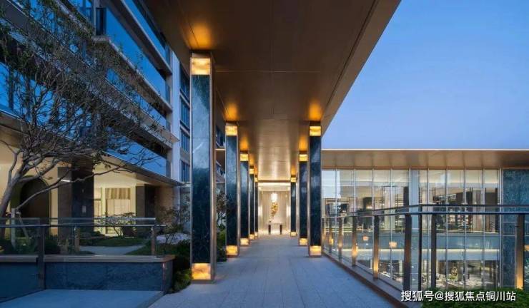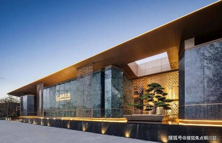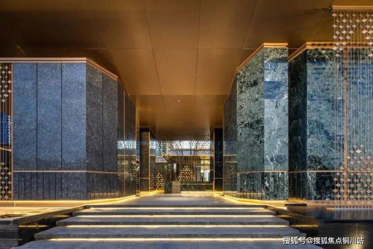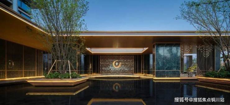 二、三进院间,设计提取凤羽元素,融入翡翠色彩,以石材与金属饰面转译文化,将凤凰于飞的尊贵气质融入场地间。乌桕森森,以水为媒,增加空间的动感与通透度,让进院空间得到延展。