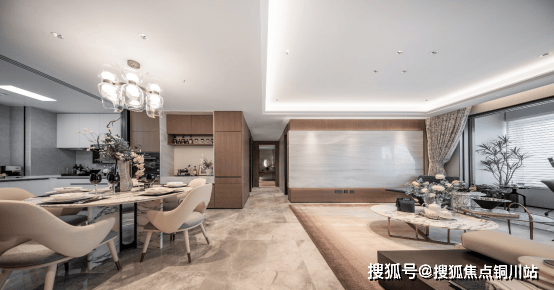 ②空间场景的颠覆创新:独创"端厅四房"格局打破传统竖厅桎梏,约7.2米景观面宽搭配270°环幕视野,将小龙湾水岸风光引入室内,创造南京罕见的"第三空间"——既可化身私人艺术廊,亦可转换为商务社交场。