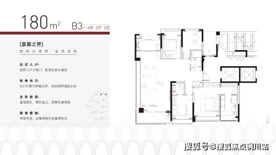 ②产品迭代:180B3户型创新压缩玄关过道面积,释放更多实用面积。搭配定制收纳系统,实现厨房空间利用率的有效提升。