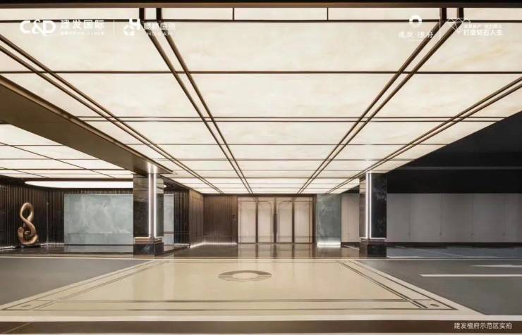 下至地库,奢华质感一目了然,行车道采用仿透光云石吊顶,持久保新,光影若现,守护业主归家的安全。