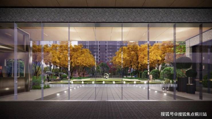 北入口设有临时落客点,实现人车分流。玻璃平开门以橱窗形式,将大区景观如画卷般呈现。