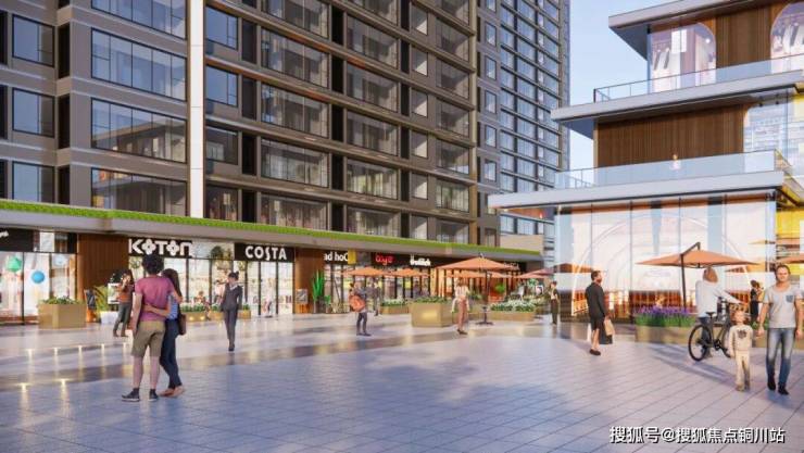 街区设计以铺装、绿岛形式,结合点状水景,用富有变化的游逛动线与灵动的景观布局,构建沉浸式的生活休憩地,乐惠百货、茶餐集市、博识园地等多元业态,满足日常社交、游逛、休憩等公共需求,尽享15分钟内的一站式生活体验。