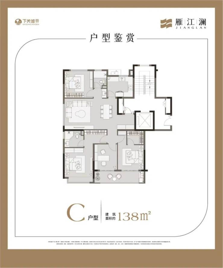 建筑面积约138㎡四房两卫,同样卧室朝南,客厅东西朝向