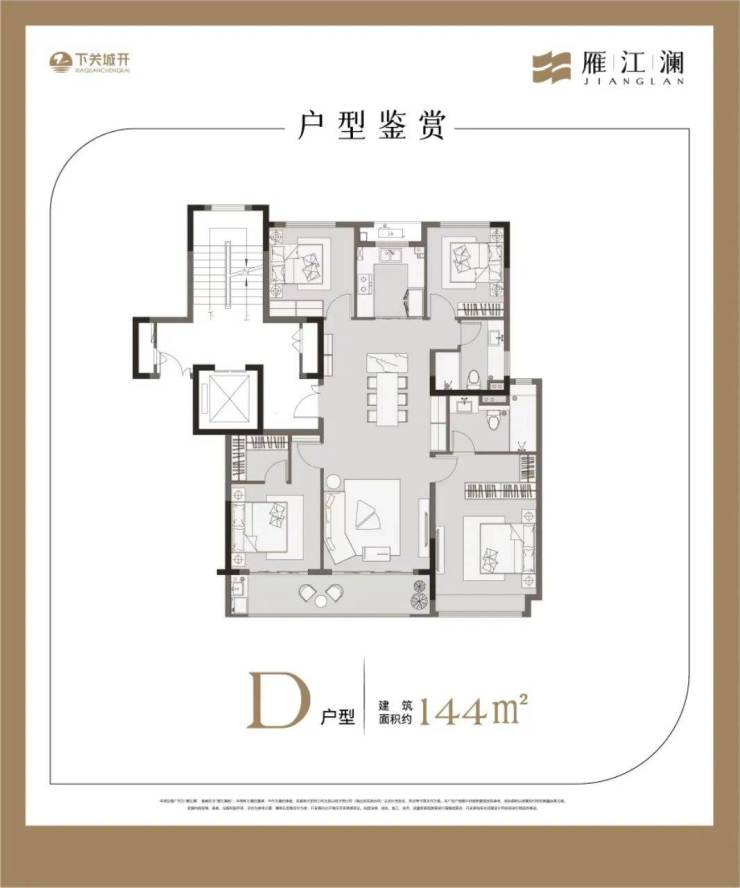 建筑面积约144㎡四房两卫,飞机户型,室内利用率很高。