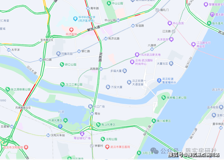 自驾出行:项目处于汉口核心,交通路网纵横, 中山大道、京汉大道、武胜路及高架、解放大道都是汉口核心的主干道,不过车流量非常大,崇仁路、硚口路等次干道比较狭窄。内环线武胜路-解放大道、航空路立交经常拥堵,解放大道行车速度极为缓慢,江汉一桥单双号限行,二环线月湖桥是著名的堵点,早晚出行高峰不是一般的堵。
