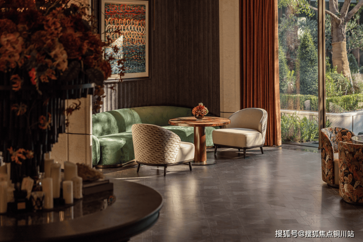 洽谈区则如私人会客厅,以围合式布局营造亲密对话的氛围。丰盈低调的色彩中“信息揭示”与“人物对白”的关键场景,生动诠释了府邸式生活的独特奢华质感。