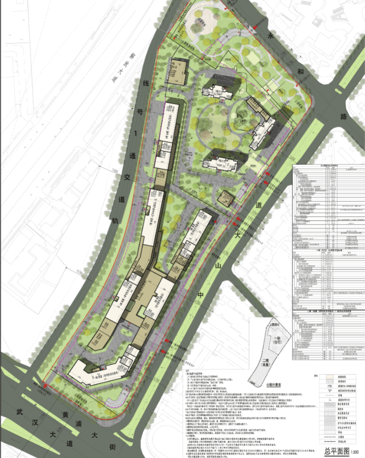该地块将分为两期开发,一期是住宅,二期是商服。