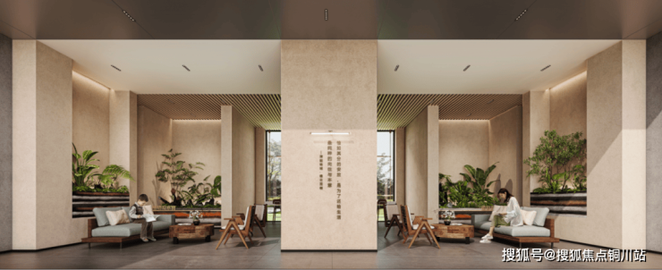 经由礼廊步入约7米挑高的礼序雅馆,我们采用酒店式框景手法打造透镜大堂,以“城市书堂”为理念,设置卡座区和书吧,可以作为接待朋友和访客的会客厅,透过玻璃透镜,便可将内部园林山水提前预览。