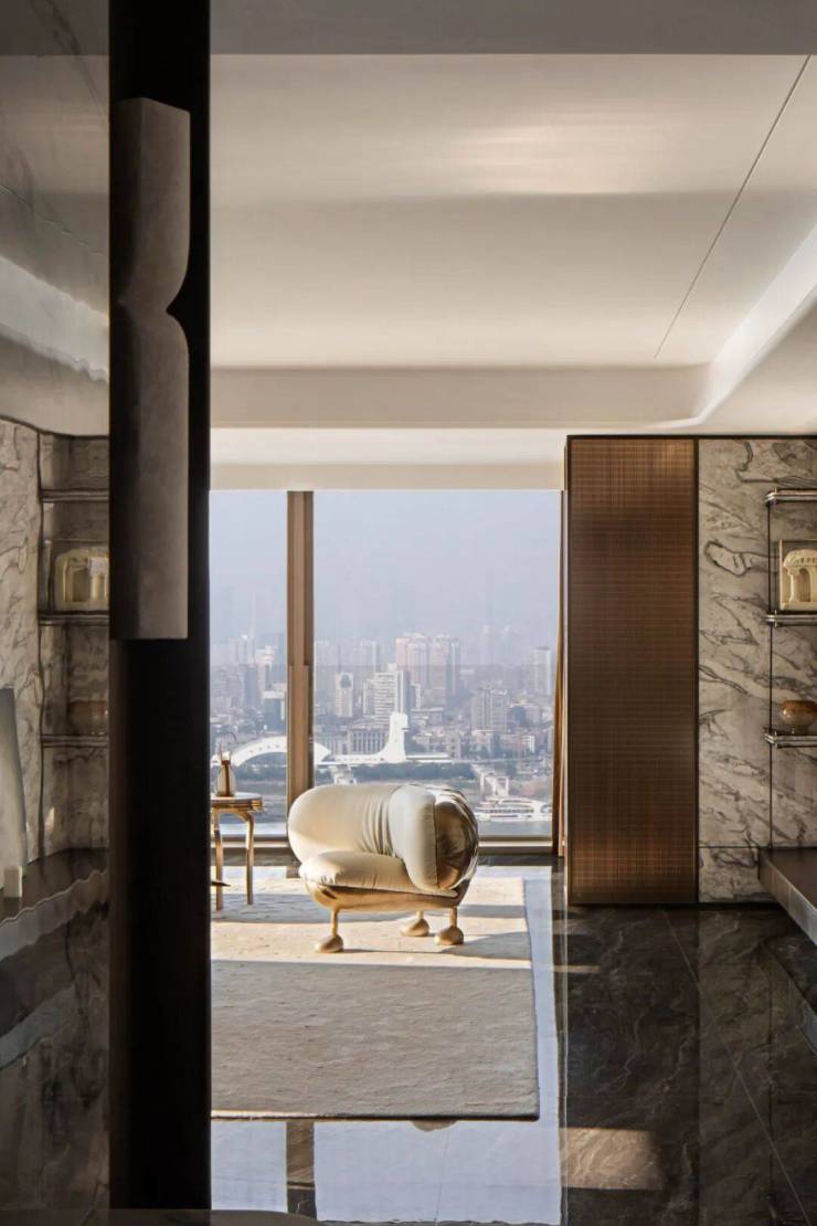 临江而居,倚水而立,生活便会趋向一种与都市保持着距离的隐逸状态。作为楚文化的发祥地,拥有悠久的历史文化,即使身处充满现代感的城市间依旧能从古老城墙的一砖一瓦中听到历史的回响。设计深入探索楚地文化和江城人文特色,以江为脉,以城为骨,以文化为魂,以人间烟火气为韵,绘制既有文化底蕴又富有国际都会色彩的生活图腾。