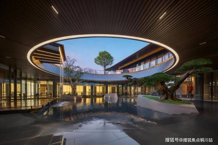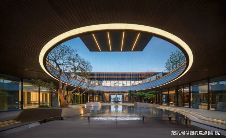 步入中心园林景观与会所,借鉴古人的“天圆地方”哲学思想,一层为方、二层为圆,即为方圆,寓意事业蒸蒸日上。