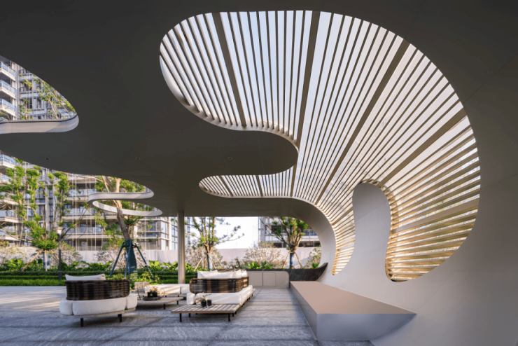 模式创新:项目打破传统社区底商模式,提出“花园式立体街区”的概念,将商业及配套功能拆解于尺度宜人的小体量盒子中,以叠合、穿插方式形成丰富的空间系统,包括形态不一的庭院、外摆空间、露台等,营造出一种“花园里的生活剧场”的浪漫氛围;