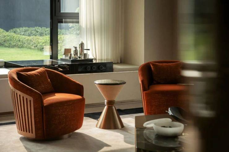 一梯一户独立归家体系,约9-10㎡入户门厅复刻古代府邸前庭礼序。