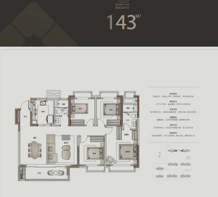 建面约143㎡,妥帖横厅大四房,终极改善太OK!