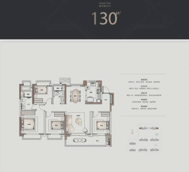 下面这款建面约130户型,空间感放大之余,功能性也更显灵活。这里只强调三点: