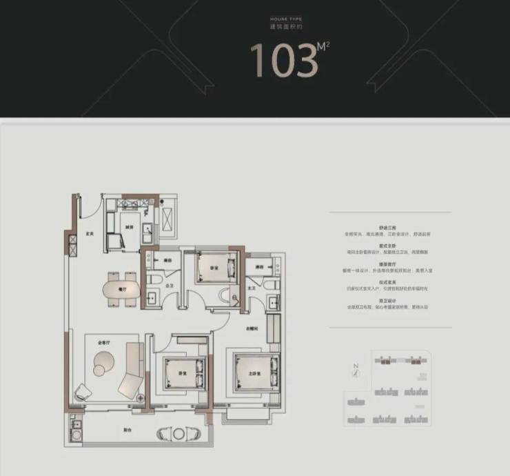 103㎡三房两厅两卫,南部新城最小户型门槛
