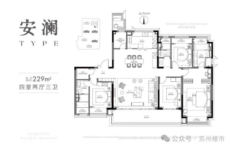 澜庭·雅致建面约229㎡奢雅大平层,充分考量每位居者的居住舒适度,以大气开阖的空间布局,藏纳都会层峯的生活图景。