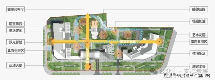 园林主轴:两侧桂花树恭迎业主归家,漫步在集散广场上,路旁的艺术灯箱及地灯照明回家的路途。