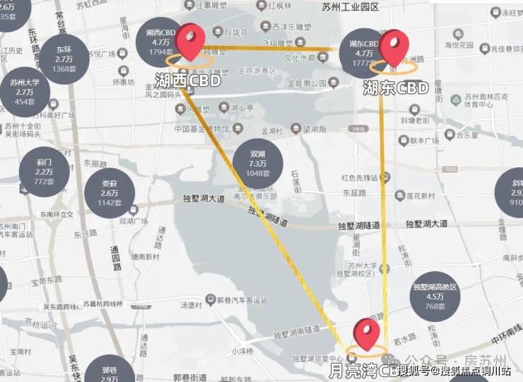 湖西一月亮湾线=苏州真正的“资源动脉”,园区千万级房产、主要产业的龙头企业,富集于轴内。