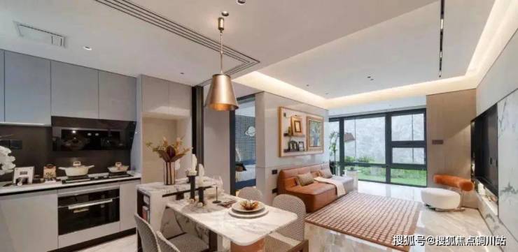 餐厅使用玻璃移门,既有开放性厨房的空间效果,又能避免油烟对客厅的影响。