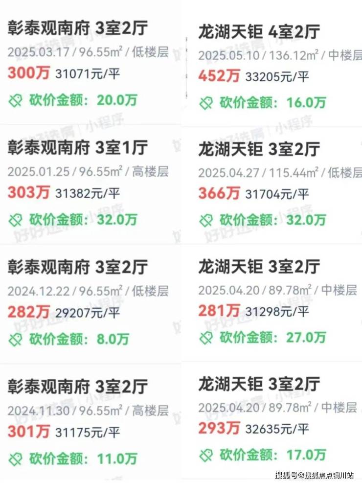 不过在楼盘北面,同样在机场二通道的龙湖天钜和彰泰观南府,现在的二手成交价在3.1-3.3万/平米。