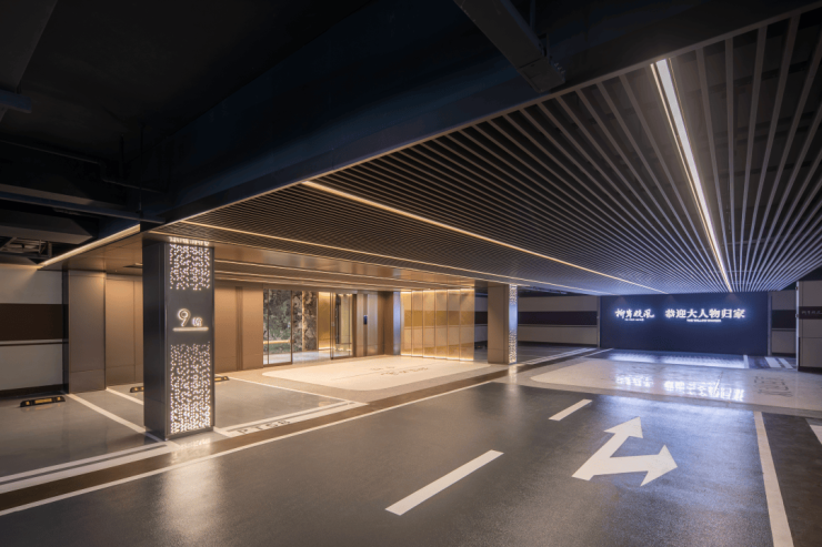 进入地库,星光顶坡道阵列式光源充满着归家的仪式感。