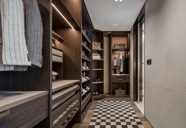 衣帽间是女人最容易发呆的地方,因为不知道自己该穿哪件衣服犹豫,所以这个电动旋转鞋架和包包柜,让每天的选择变得有趣,女王的礼服、首饰、包包跟幸运偶遇。