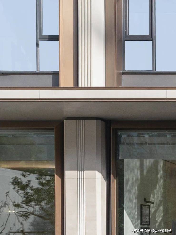 项目地处内环,周边总部企业云集,多是商务感、冷色系的公建化立面,我们希望为“中寰悦府”社区赋予一抹温暖的亮色。因此我们从夕阳西下时,长江水面上波光粼粼的暖金色中汲取灵感,赋予了建筑“长江金·钻石立面”的设计理念,这种光影的流动感通过香槟金铝板与Low-e玻璃的材质碰撞,转化为建筑的立面语言。