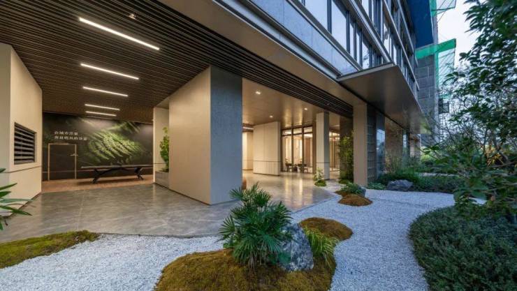 正式进入示范区,首先映入眼帘的,是近3000方的共享会客厅,作为三大中心花园之一,全世界甄选49种植被设计打造,层次丰富,搭配黑山石和水景,营造曲径通幽的归家之路,未来还能增加小业主对于植物的认知度。