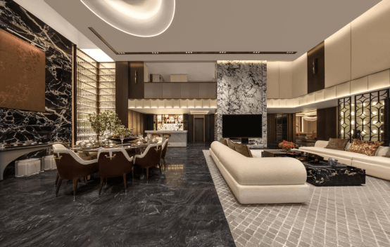 独门独院形制,深墙院里围合家族门风;约6.7米挑高餐客厅,引四时花木、塔影天光入室;270°无界视野,远眺龙光塔影绰约,近揽四时园境。