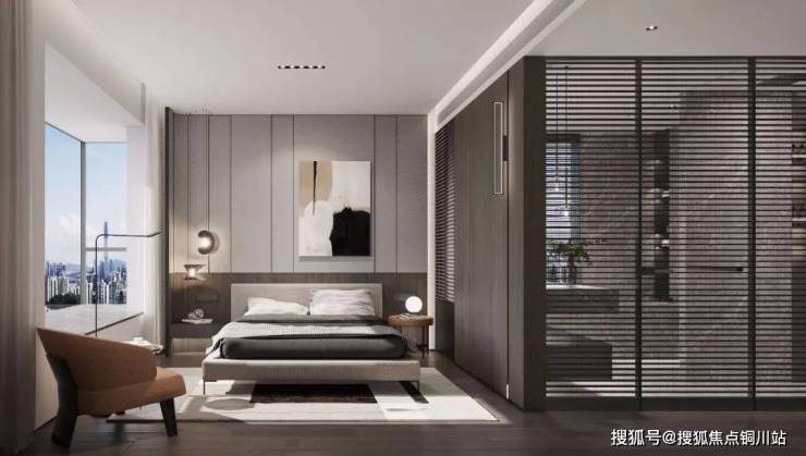 豪华酒店式主卧套房设计,独立起居室+步入式衣帽间+配备浴缸的私密卫浴空间,把尊崇感做到了极致。