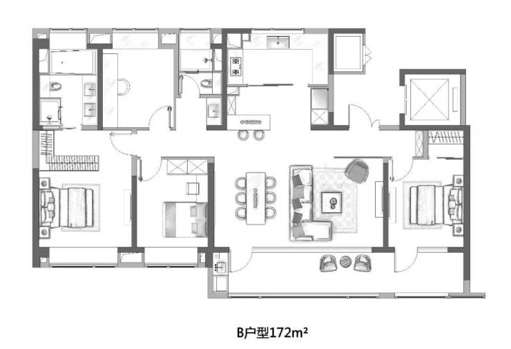 高阶大宅不仅体现在约172㎡户型的家里,更是体现在小区的气魄景观上。