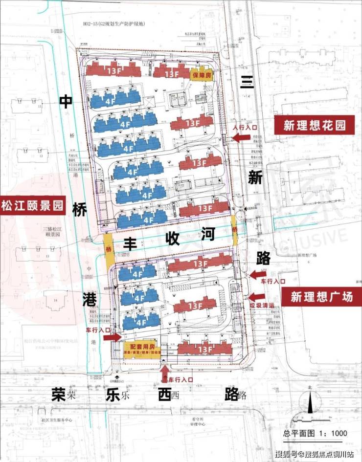项目由两幅小地块组成(H02-16、H02-18),根据设计方案显示,项目总共将建17幢4-13F的商品住宅,以及1幢配套用房,其中: