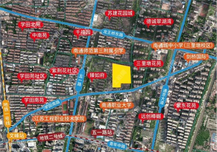 教育配套:周边 3km 内共有 46 个幼儿园、10 个小学、5 个中学,包括紫荆花幼儿园、江苏省南通师范第三附属小学、南通市第三中学学田校区等,教育资源丰富。