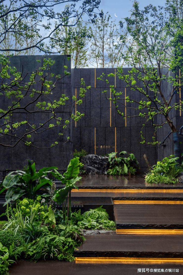 下沉式庭院乌桕乔木,与林下休憩区、瀑布景观以及禅意茶室等特色元素,巧妙联动。