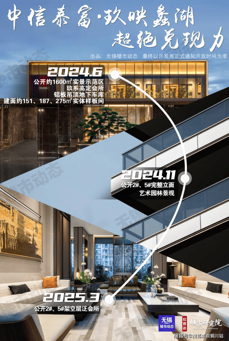 2024年6月至今,项目接连公开了实景示范区、高定会所、地下车库、实体样板间、2#、5#完整立面、艺术园林景观、2#、5#架空层泛会所......