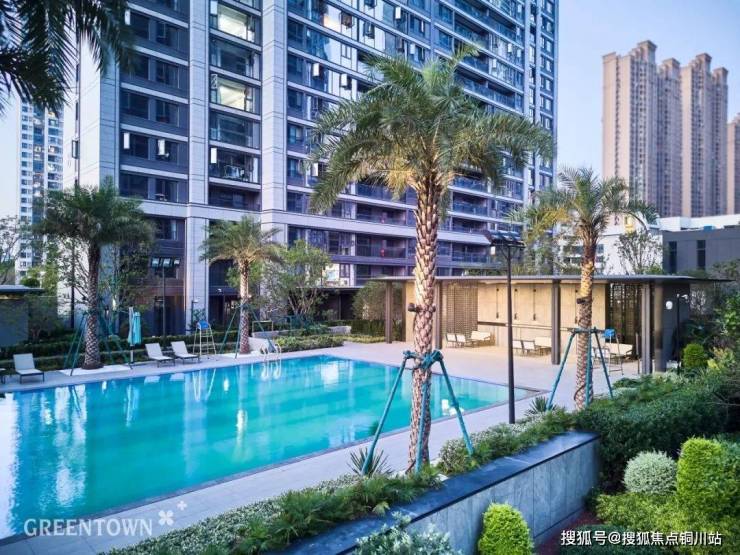 在宅间的花园区,充分考虑四季的变化,巧妙运用樱花、枇杷、紫薇等组合,形成高低错落的组团景观。片区内少见的约360㎡无边镜面泳池,天光云影、林立楼宇倒映池中,绿意蔚蓝萦绕,给人沉浸式的度假体验。