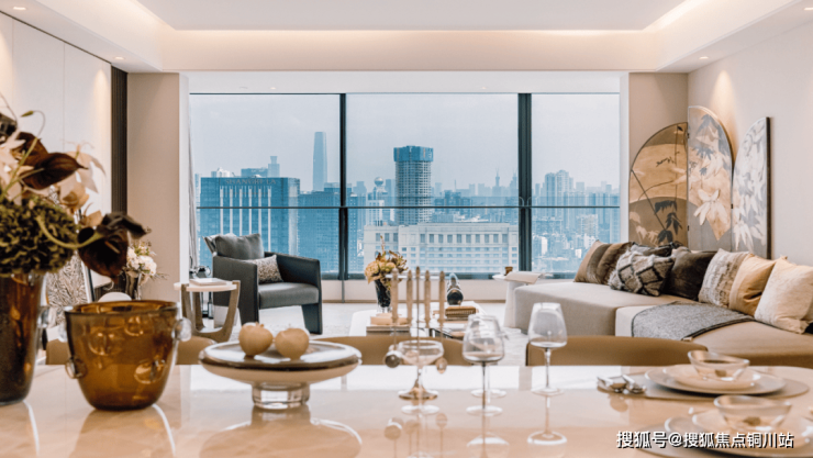 高区样板房以墅级南向大面宽,格局通透,阳光与清风皆邀入室,户内流动四时景致。