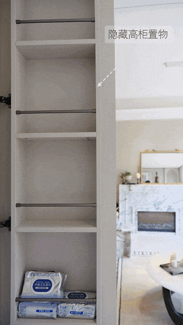 在建面约132㎡样板间里,还有独立的800库,无论是超大件,还是小件,都能容纳,或者做整面零食柜都可以。
